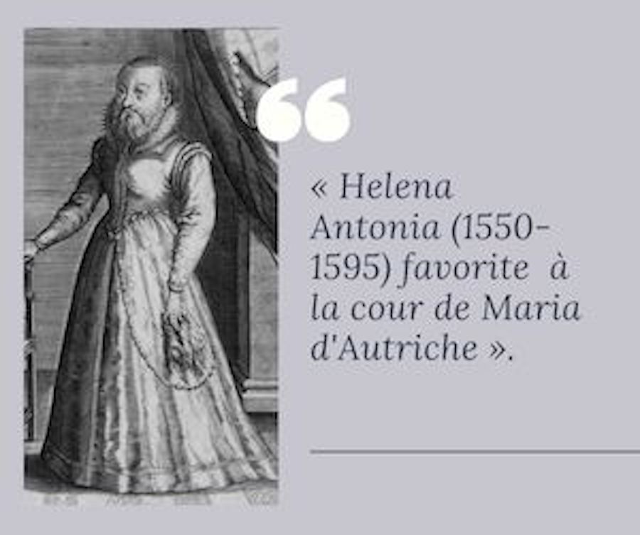 La première femme à barbe s’appelle Helena Antonia, elle est belge, née à Liège en 1550, naine et barbue de naissance. Helena appartenait à la cour de Maria d’Autriche, impératrice du Saint Empire Romain, puis elle a été favorite de Marguerite d’Autriche, reine d’Espagne, et dame d’honneur de Constance d’Autriche.